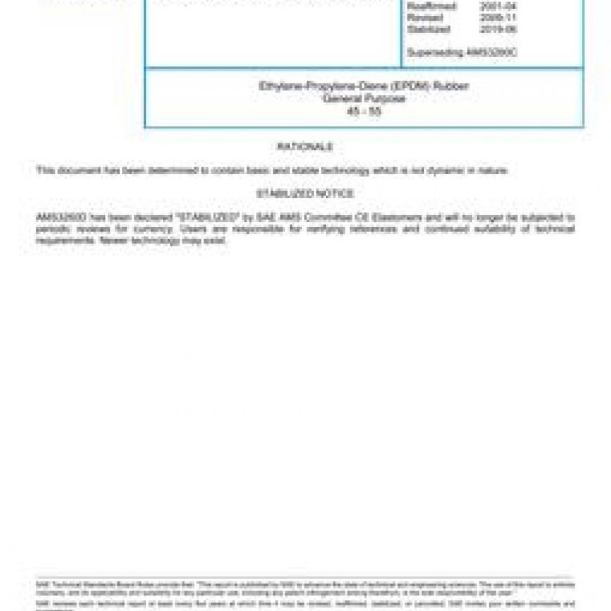 SAE AMS3260D Ethylene-Propylene-Diene (EPDM) Rubber General Purpose 45 - 55 (Stabilized: Jun 2019)