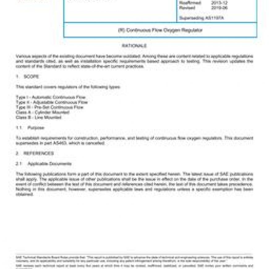 SAE AS1197B Continuous Flow Oxygen Regulator