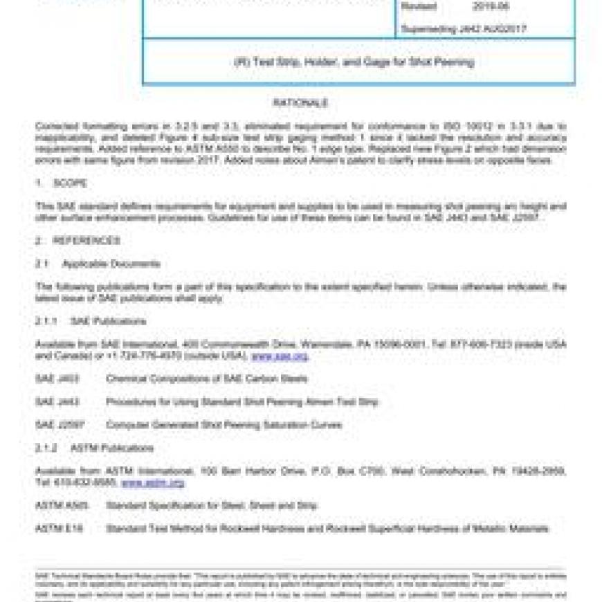 SAE J442_201906 Test Strip, Holder, and Gage for Shot Peening