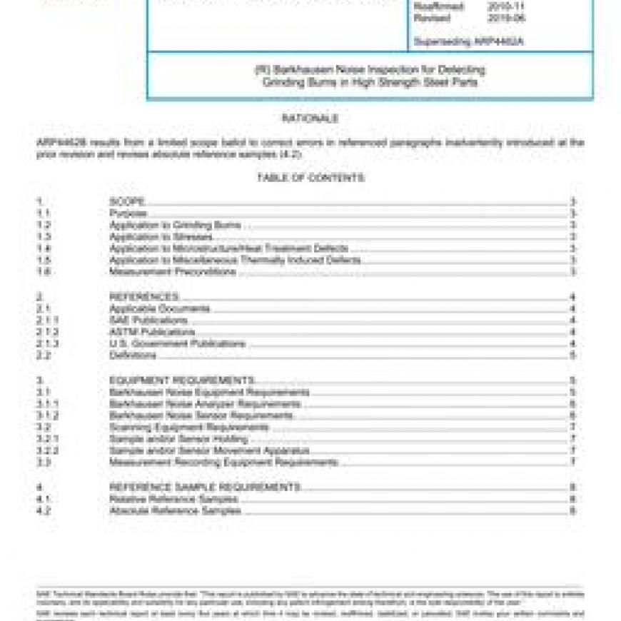 SAE ARP4462B Barkhausen Noise Inspection for Detecting Grinding Burns in High Strength Steel Parts