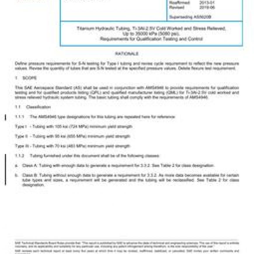 This SAE Aerospace Standard (AS) shall be used in conjunction with AMS4946 to provide requirements for qualification testing and for qualified products listing (QPL) and qualified manufacturer listing (QML) for Ti-3Al-2.5V cold worked and stress relieved hydraulic system tubing. The basic tubing shall comply with the requirements of AMS4946.