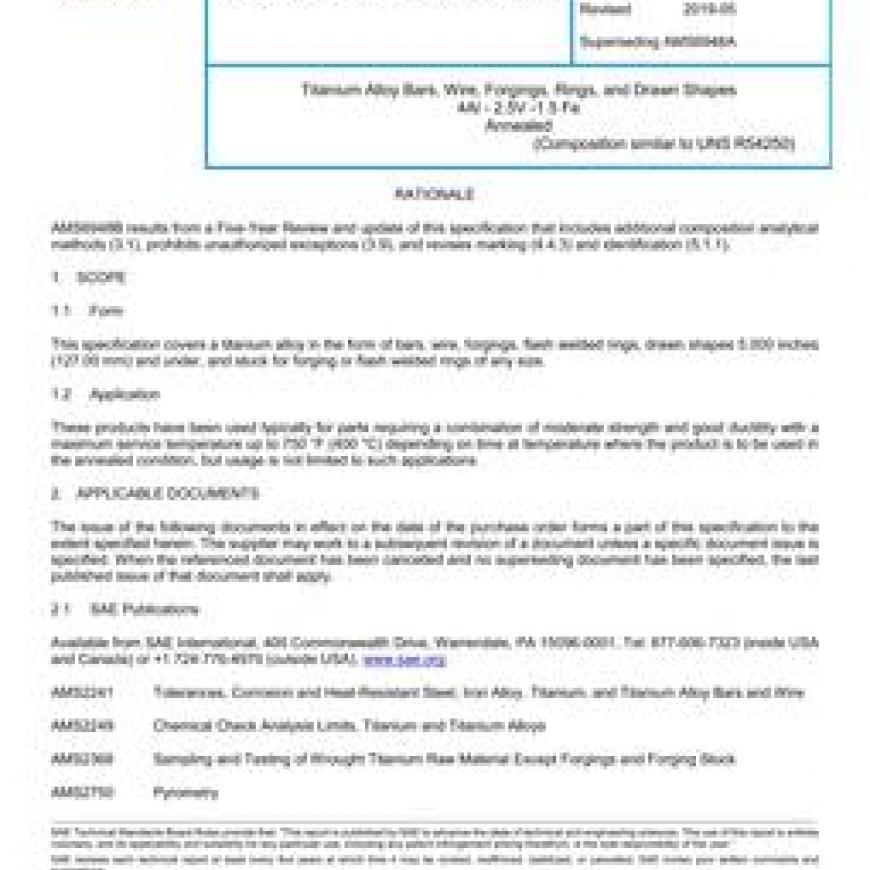 SAE AMS6948B Titanium Alloy Bars, Wire, Forgings, Rings, and Drawn Shapes 4Al - 2.5V -1.5 Fe Annealed