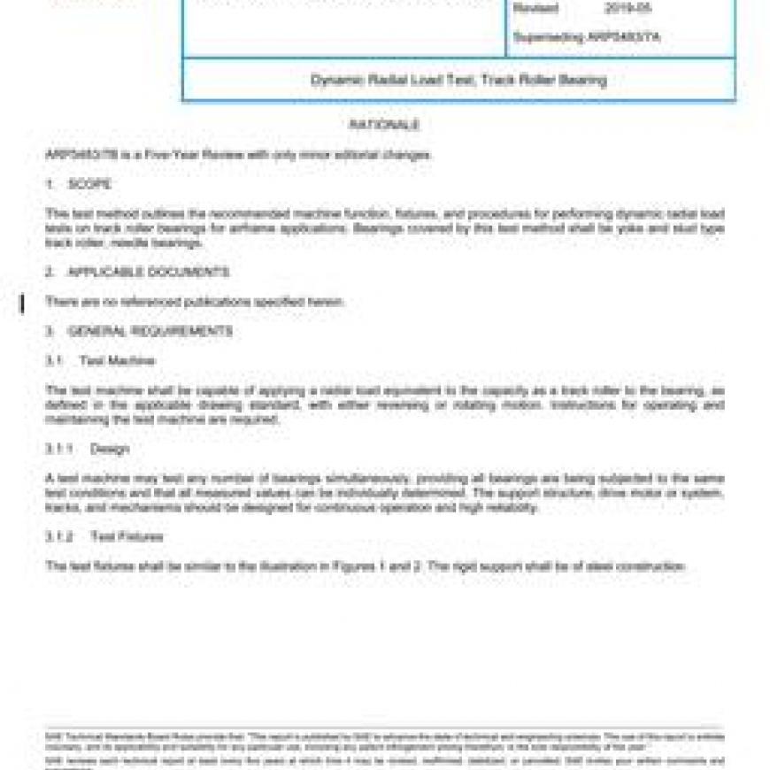 This test method outlines the recommended machine function, fixtures, and procedures for performing dynamic radial load tests on track roller bearings for airframe applications. Bearings covered by this test method shall be yoke and stud type track roller, needle bearings.