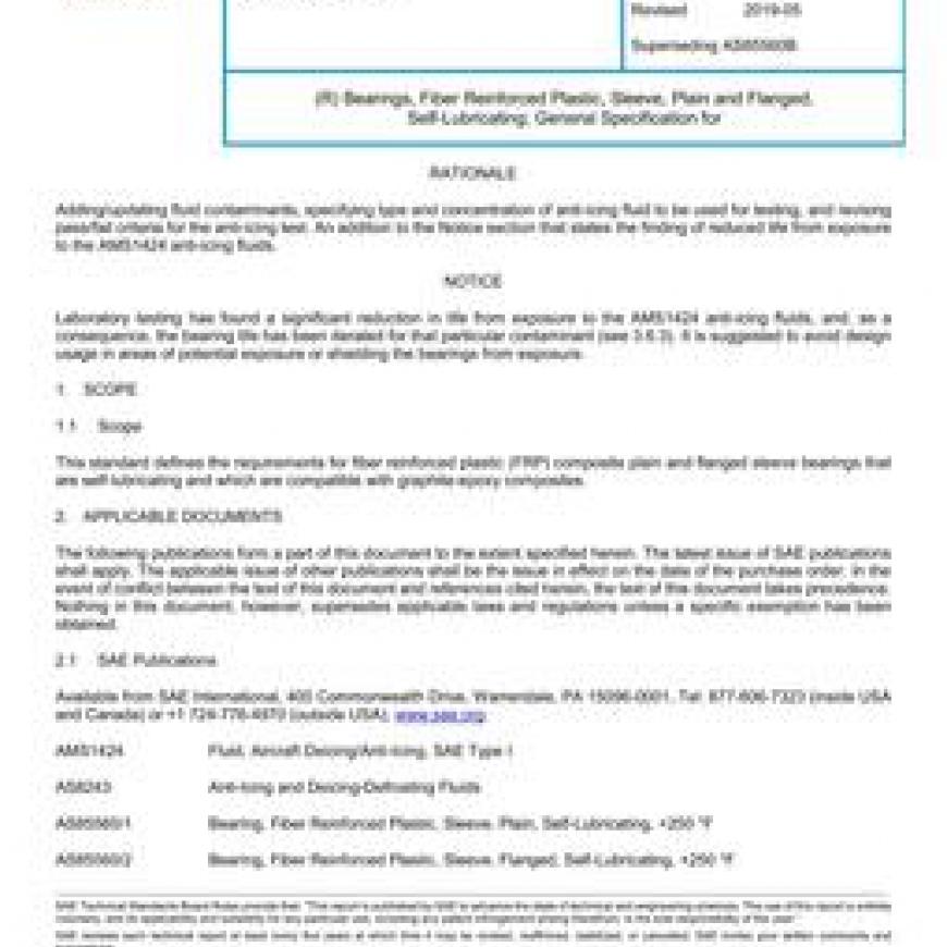 SAE AS85560C Bearings, Fiber Reinforced Plastic, Sleeve, Plain and Flanged, Self-Lubricating; General Specification for