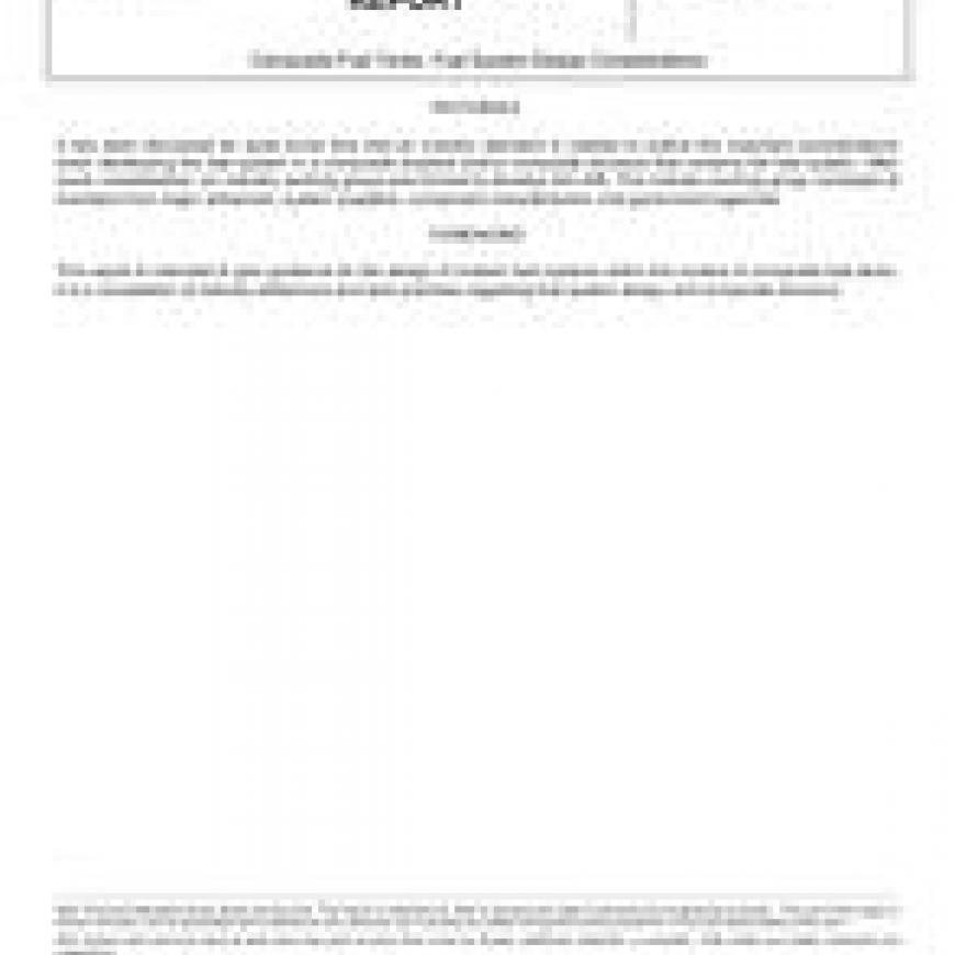 This SAE Aerospace Information Report (AIR) is a compilation of engineering references and data useful to the technical community that can be used to ensure fuel system compatibility with composite structure. This AIR is not a complete detailed design guide and is not intended to satisfy all potential fuel system applications. Extensive research, design, and development are required for each individual application.