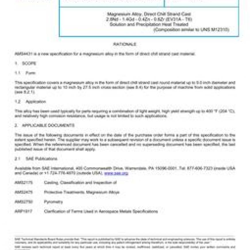 This specification covers a magnesium alloy in the form of direct chill strand cast round material up to 9.0 inch diameter and rectangular material up to 10 inch by 27.5 inch cross-section (see 8.4) for the purpose of machine from solid applications (see 8.2.1).