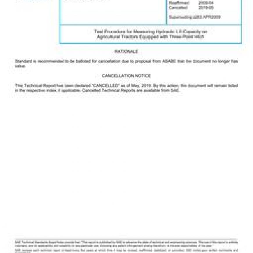 SAE J283_201905 Test Procedure for Measuring Hydraulic Lift Capacity on Agricultural Tractors Equipped with Three-Point Hitch