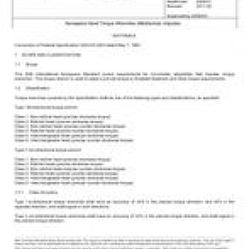 This SAE International Aerospace Standard covers requirements for micrometer adjustable, feel impulse, torque wrenches. The torque wrench is used to apply a pre-set torque to threaded fasteners and other torque requirements.