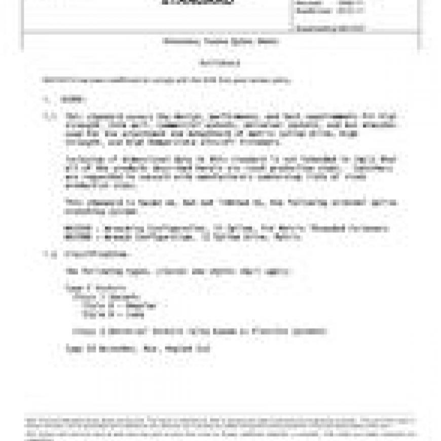 This standard establishes the means of assessing the performance of external spline drive wrenching systems for fasteners. The standard defines the Design, Performance and Test Requirements for metric spline drive fastener external wrenching systems. The spline wrench shall be capable of torque loading hexagonal, bi-hexagonal and spline drive fasteners. Fasteners having the spline wrenching configuration shall not be capable of being wrenched with hexagonal and bi-hexagonal wrenches.