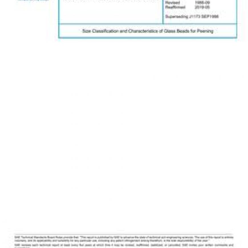 SAE J1173_201905 ¿¿ SIZE CLASSIFICATION AND CHARACTERISTICS OF GLASS BEADS FOR PEENING