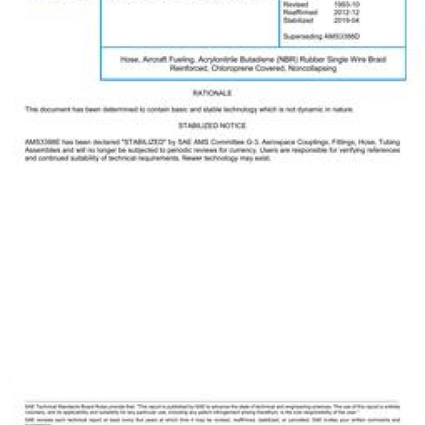 SAE AMS3388E Hose, Aircraft Fueling, Acrylonitrile Butadiene (NBR) Rubber Single Wire Braid Reinforced, Chloroprene Covered, Noncollapsing (Stabilized: Apr 2019)
