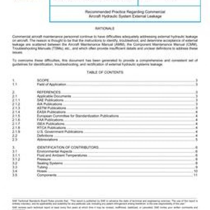 This Aerospace Recommended Practice (ARP) provides a comprehensive and consistent set of guidelines for the definition, recognition, troubleshooting and repair of hydraulic components and systems on in-service commercial aircraft affected by external leakage.