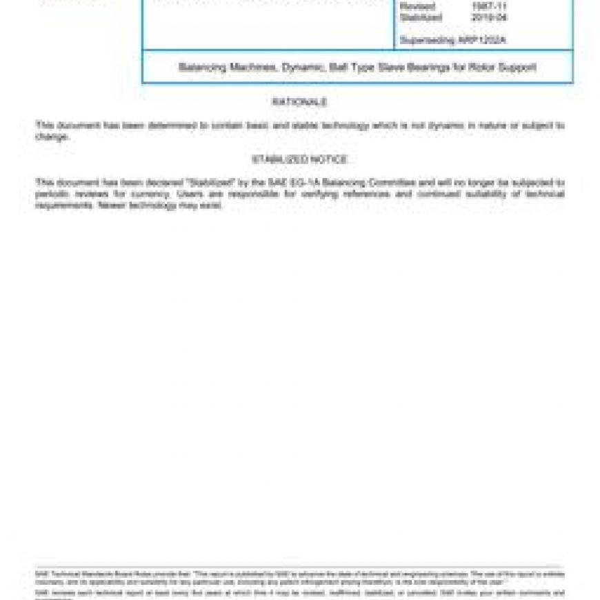 SAE ARP1202B Balancing Machines, Dynamic, Ball Type Slave Bearings for Rotor Support (Stabilized: Apr 2019)