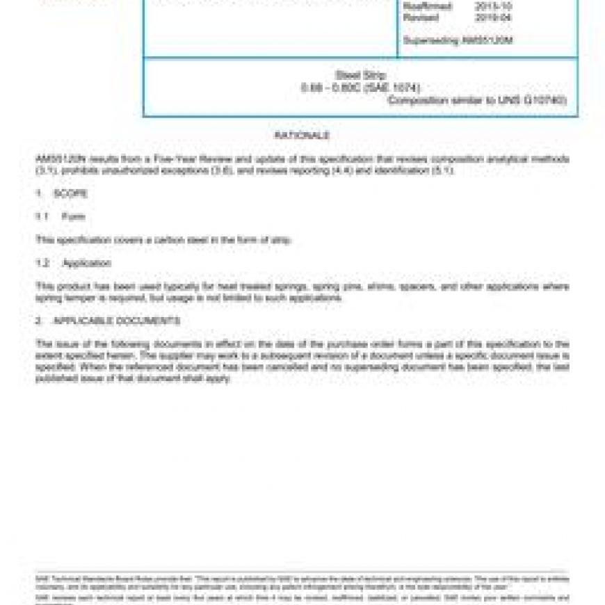 SAE AMS5120N Steel Strip 0.68 - 0.80C (SAE 1074)