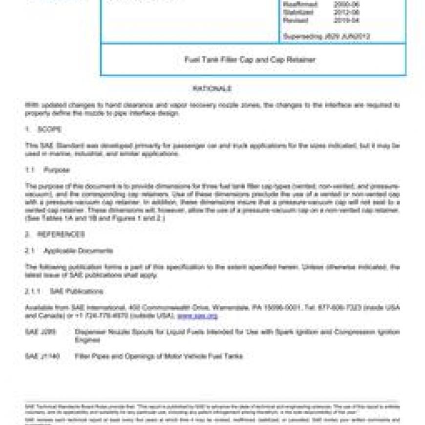 SAE J829_201904 Fuel Tank Filler Cap and Cap Retainer
