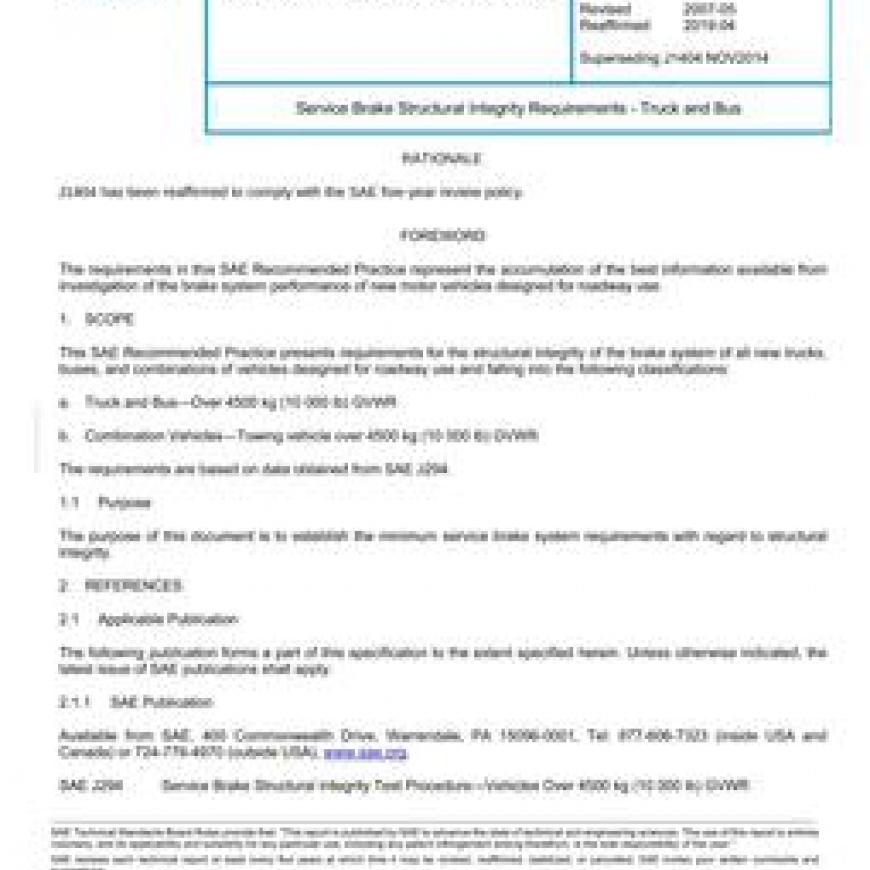 This SAE Recommended Practice presents requirements for the structural integrity of the brake system of all new trucks, buses, and combinations of vehicles designed for roadway use and falling into the following classifications:a Truck and Bus - Over 4500 kg (10 000 lb) GVWRb Combination Vehicles - Towing vehicle over 4500 kg (10 000 lb) GVWRThe requirements are based on data obtained from SAE J294.
