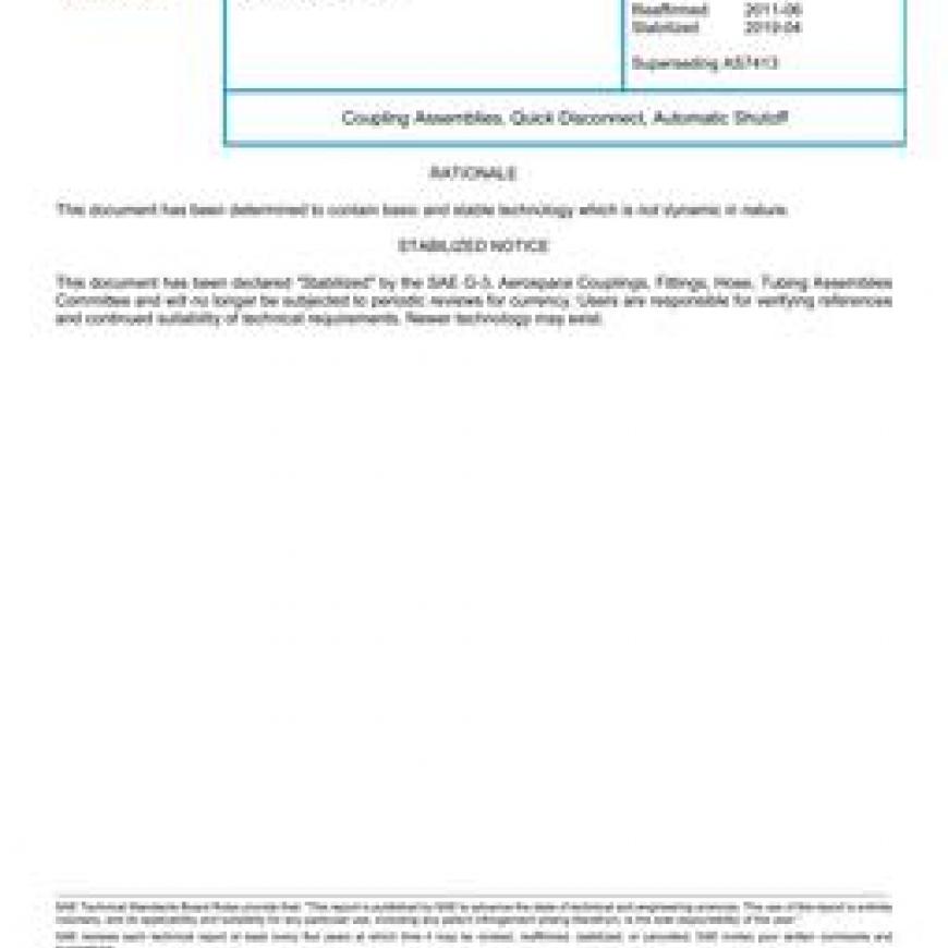 SAE AS7413A Coupling Assemblies, Quick Disconnect, Automatic Shutoff (Stabilized: Apr 2019)