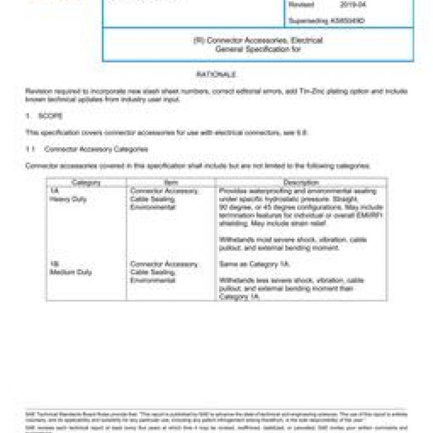 SAE AS85049E Connector Accessories, Electrical General Specification for