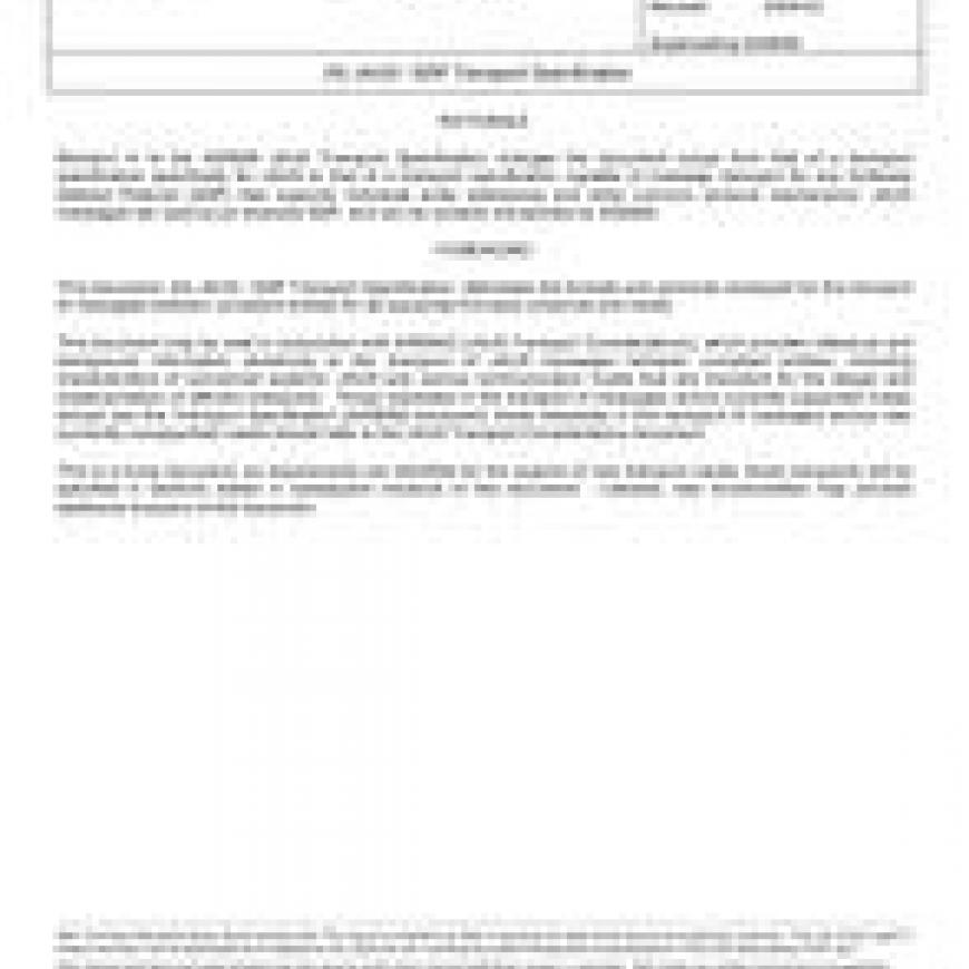 This SAE Aerospace Standard (AS) specifies a data communications layer for the transport of messages defined by the Joint Architecture for Unmanned Systems (JAUS) or other Software Defined Protocols (SDP). This Transport Specification defines the formats and protocols used for communication between compliant entities for all supported linklayer protocols and media. Although JAUS is the SDP used as the example implemented throughout this document, AS5669 can be used for any SDP that meets the required capabilities. A Software Defined Protocol is defined as an application data interface for communicating between software elements. The SDP is agnostic of the underlying communications protocol and in fact communicates in much the same manner regardless if the communicating entities are collocated in the same memory space or separated by a satellite link.The purpose of this document is to facilitate interoperation of systems by standardization of the Transport Layer for JAUS messages or other SDP.