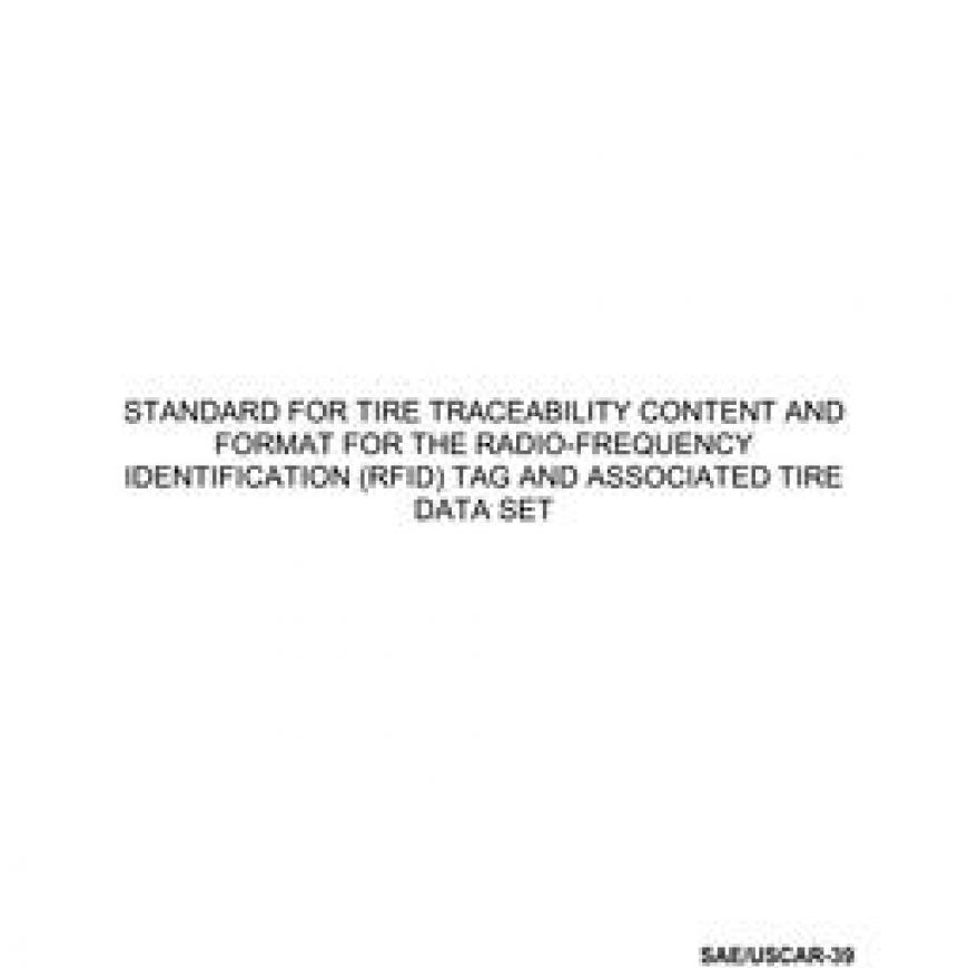 This standard describes a requirement for automotive tire traceability. It includes a definition of the RFID tag and the associated tire data set that can be accessed using the RFID tag as an identifier. The standard describes a unique identification and the associated data set for each tire produced by the tire fabricator. This data will either be provided or transmitted at the time of shipment to retailers, wholesalers or original equipment vehicle manufacturers. Tire identification code and data may be used for error proofing, determining the tire specifications or supporting any inquiries that occur for the duration of its automotive life.