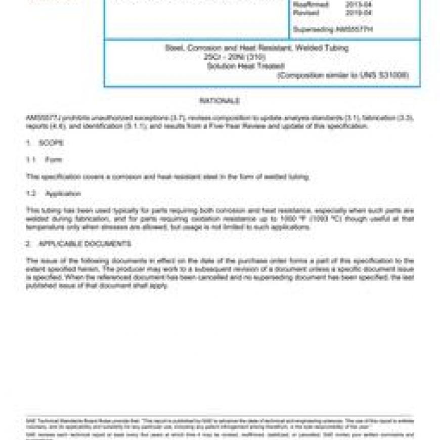 SAE AMS5577J Steel, Corrosion and Heat Resistant, Welded Tubing 25Cr - 20Ni (310) Solution Heat Treated