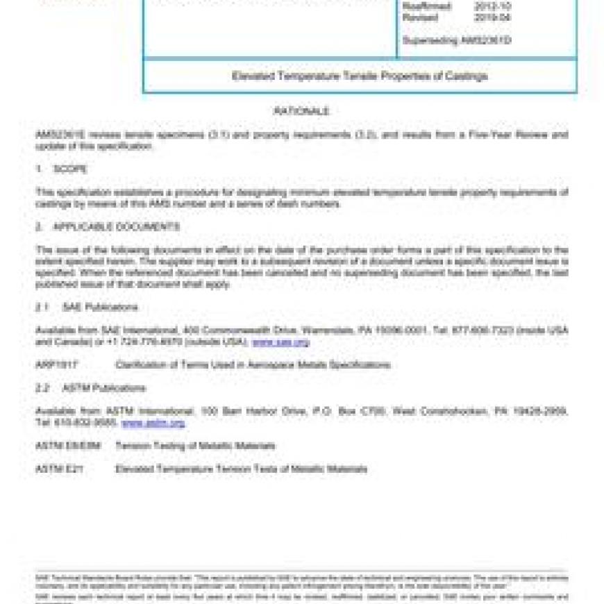 SAE AMS2361E Elevated Temperature Tensile Properties of Castings