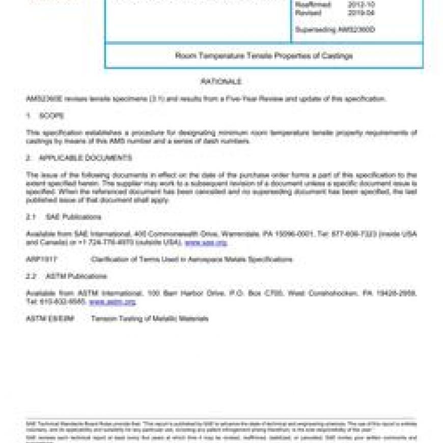 SAE AMS2360E Room Temperature Tensile Properties of Castings