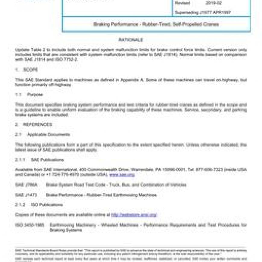 SAE J1977_201902 Braking Performance - Rubber-Tired, Self-Propelled Cranes