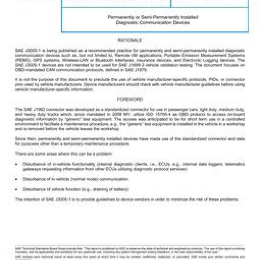 The scope of the document is to define communication best practices in order to minimize problems for the vehicle owner when installing equipment which has a permanently or semi-permanently diagnostic CAN communication device connected to the SAE J1962 connector, or hardwired directly to the in-vehicle network.