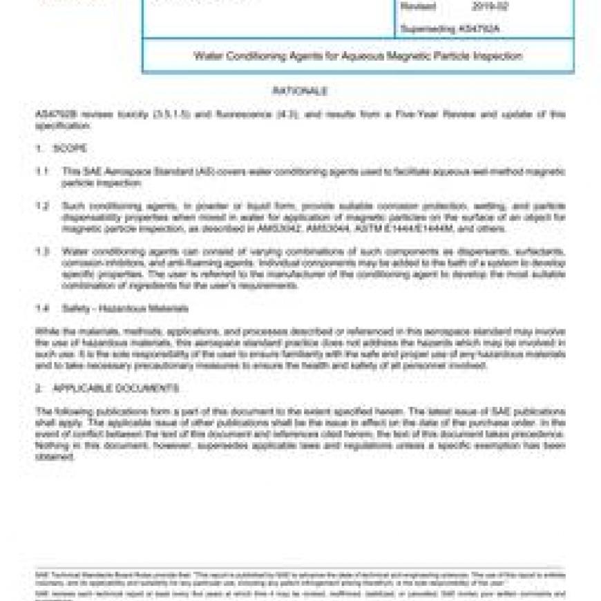 SAE AS4792B Water Conditioning Agents for Aqueous Magnetic Particle Inspection