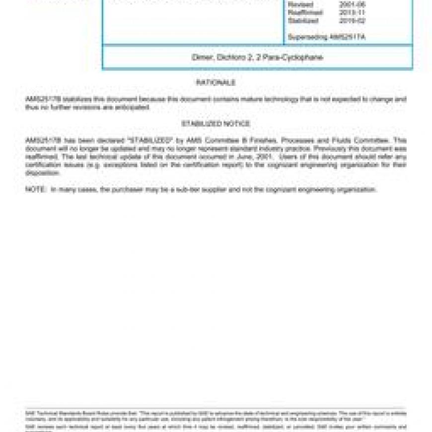 SAE AMS2517B Dimer, Dichloro 2, 2 Para-Cyclophane (Stabilized: Feb 2019)