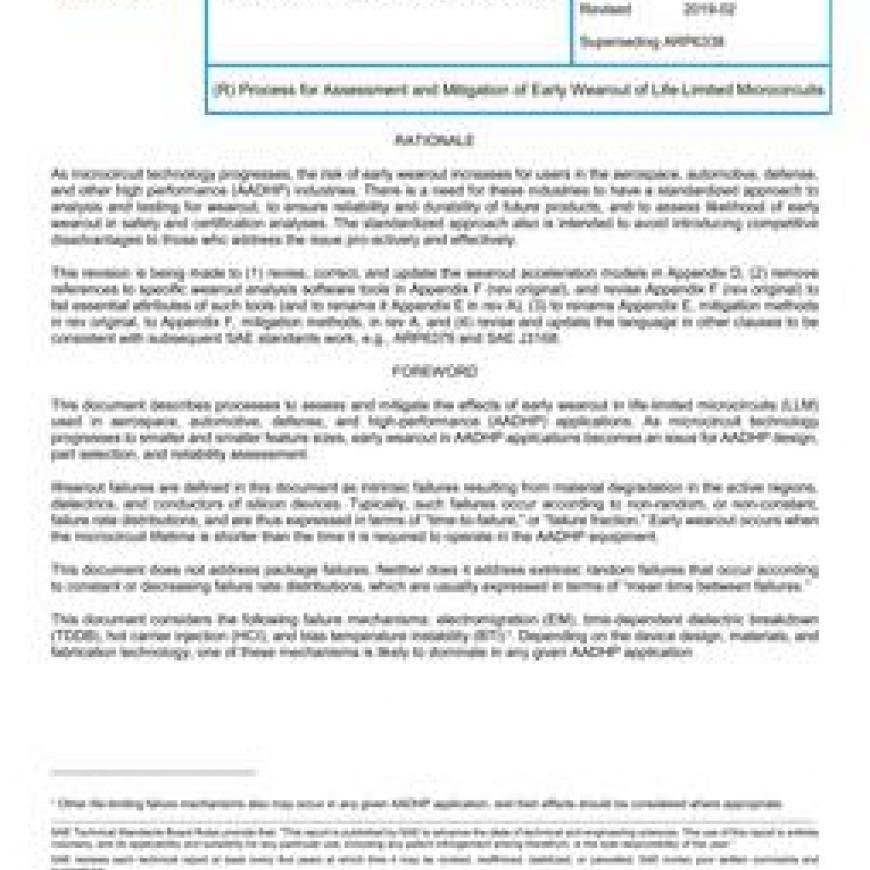 This document is intended for use by designers, reliability engineers, and others associated with the design, production, and support of electronic sub-assemblies, assemblies, and equipment used in AADHP applications to conduct lifetime assessments of microcircuits with the potential for early wearout; and to implement mitigations when required; and by the users of the AADHP equipment to assess those designs and mitigations.This document focuses on the LLM wearout assessment process. It acknowledges that the AADHP system design process also includes related risk mitigation and management; however, this document includes only high-level reference and discussion of those topics, in order to show their relationship to the LLM assessment process.