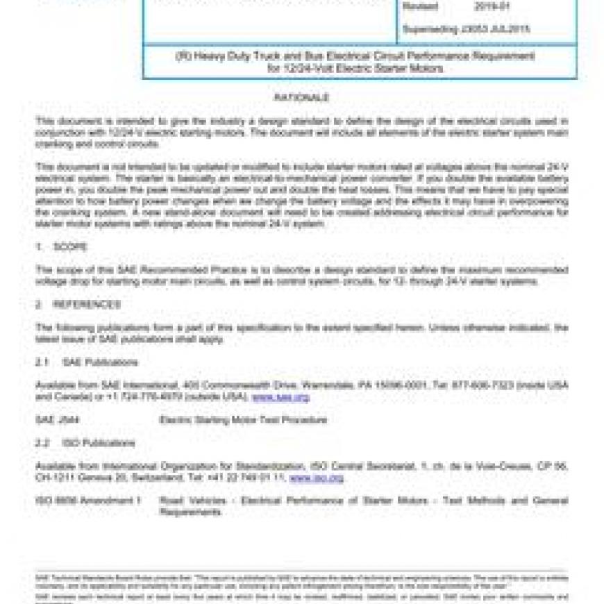 SAE J3053_201901 Heavy Duty Truck and Bus Electrical Circuit Performance Requirement for 12/24-Volt Electric Starter Motors