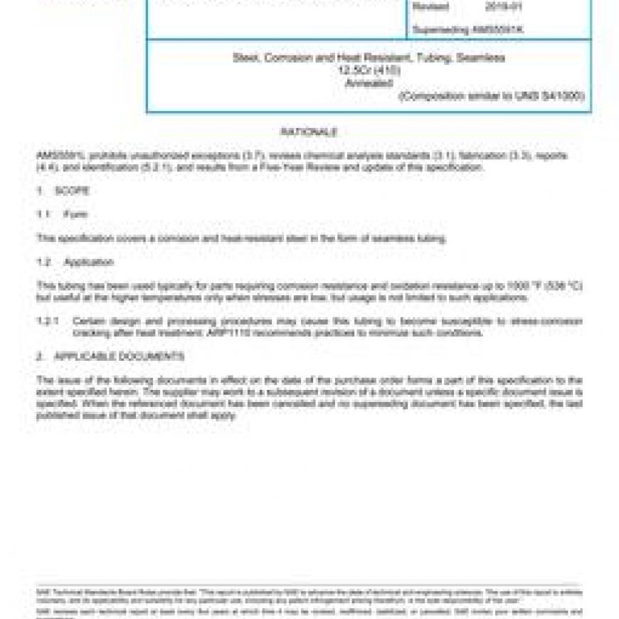 SAE AMS5591L Steel, Corrosion and Heat Resistant, Tubing, Seamless 12.5Cr (410) Annealed