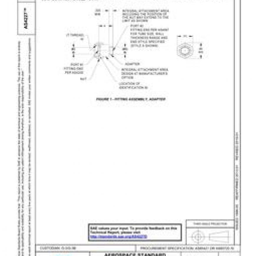 SAE AS4227D FITTING ASSEMBLY, ADAPTER, INTERNAL THREAD, BEAM SEAL TO INTEGRAL WELD RING