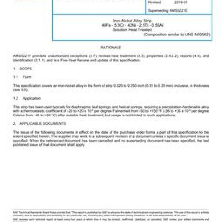 SAE AMS5221F Iron-Nickel Alloy Strip 49Fe - 5.3Cr - 42Ni - 2.5Ti - 0.55Al Solution Heat Treated