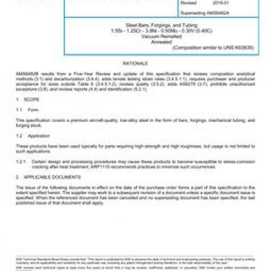 SAE AMS6482B Steel Bars, Forgings, and Tubing 1.5Si - 1.25Cr - 3.8Ni - 0.50Mo - 0.30V (0.40C) Vacuum Remelted Annealed