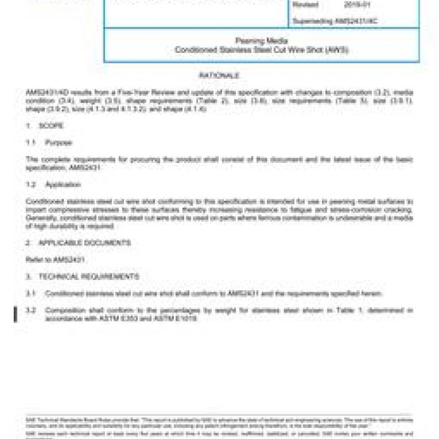 SAE AMS2431/4D Peening Media Conditioned Stainless Steel Cut Wire Shot (AWS)