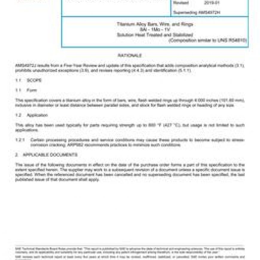 SAE AMS4972J Titanium Alloy Bars, Wire, and Rings 8Al - 1Mo - 1V Solution Heat Treated and Stabilized