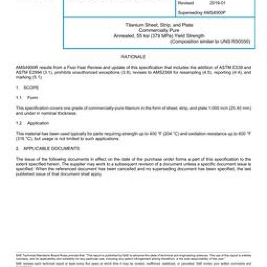 SAE AMS4900R Titanium Sheet, Strip, and Plate Commercially Pure Annealed, 55 ksi (379 MPa) Yield Strength