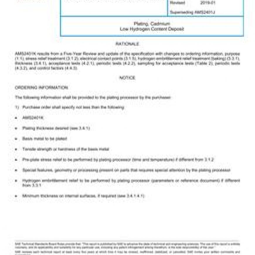 SAE AMS2401K Plating, Cadmium Low Hydrogen Content Deposit