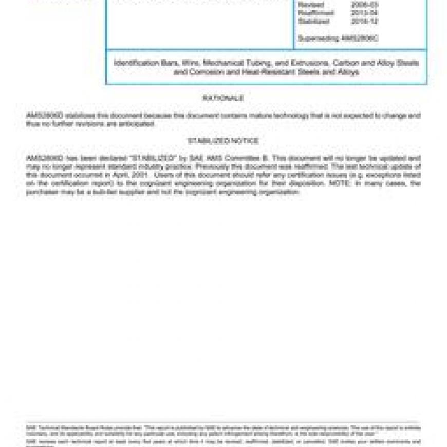 Identification Bars, Wire, Mechanical Tubing, and Extrusions, Carbon and Alloy Steels and Corrosion and Heat-Resistant Steels and Alloys (Stabilized: Dec 2018)