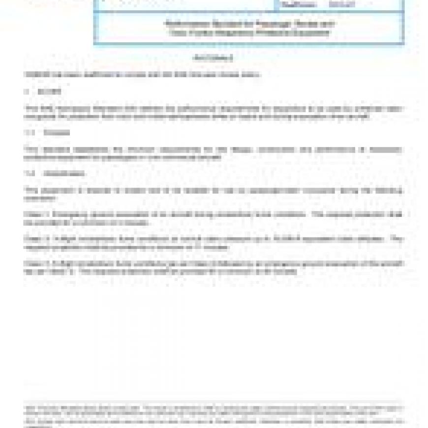 This SAE Aerospace Standard (AS) defines the performance requirements for equipment to be used by untrained cabin occupants for protection from toxic and irritant atmospheres while on board and during evacuation of an aircraft.