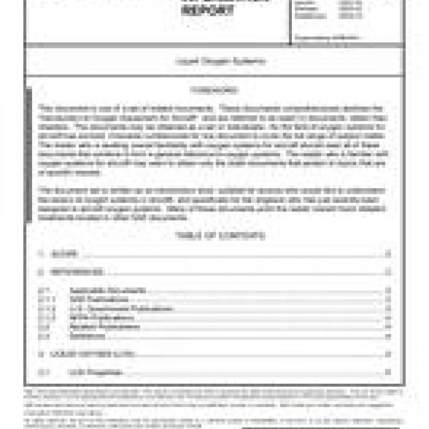 This Aerospace Information Report provides general information to aircraft designers and engineers, regarding LOX, its properties, its storage and its conversion to gas. Much useful information is included herein for aircraft designers regarding important design considerations for a safe and effective installation to an aircraft. The associated ground support equipment needed to support operations of LOX equipped aircraft is also discussed. It is important to realize that LOX equipped aircraft cannot be supported unless this support infrastructure is also available. A significant part of this document will address the specific advantages, disadvantages and precautions relating to LOX systems. These are important issues that must be considered in deciding which oxygen system to install to the aircraft. Also, many commercial and military aircraft use aeromedical LOX equipment that is mostly portable equipment. Aeromedical LOX equipment is not addressed herein as it is beyond the scope of this document.