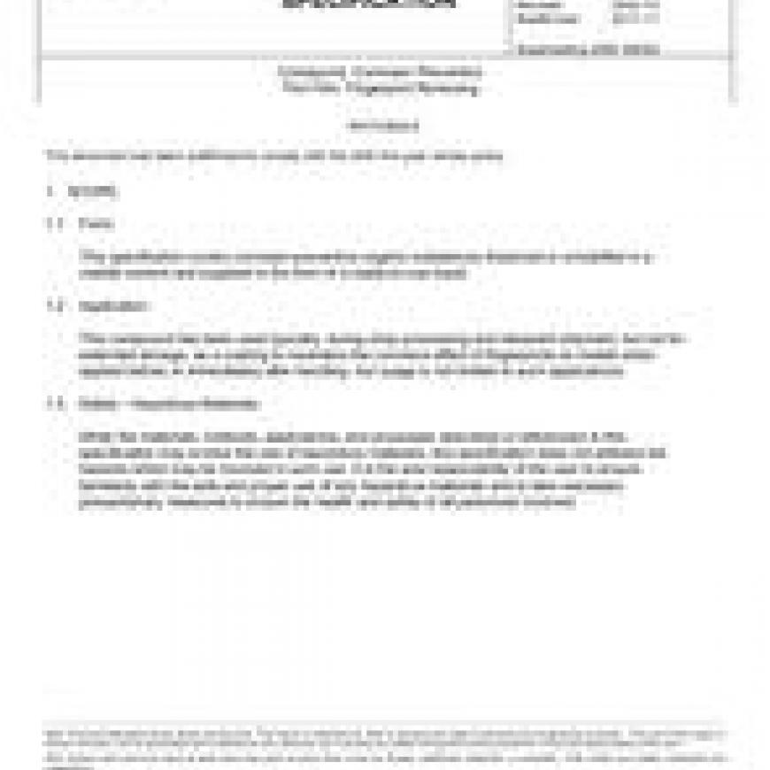 This specification covers corrosion-preventive organic substances dissolved or emulsified in a volatilesolvent and supplied in the form of a ready-to-use-liquid.This compound has been used typically, during shop processing and interplant shipment, but not forextended storage, as a coating to neutralize the corrosive effect of fingerprints on metals when appliedbefore or immediately after handling, but usage is not limited to such applications.