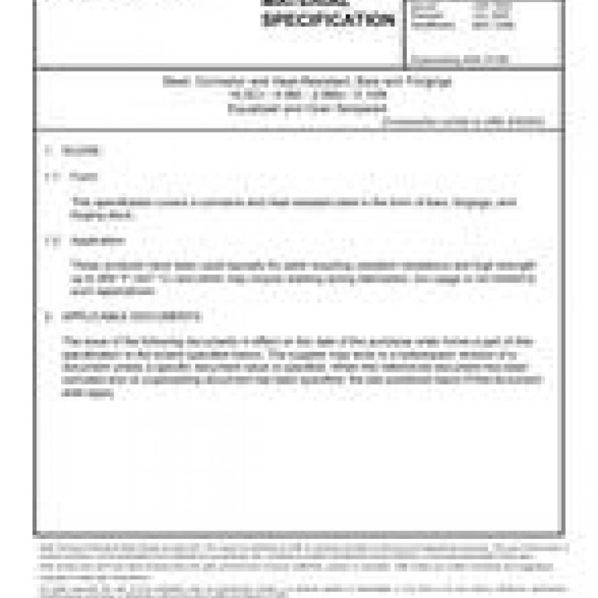 This specification covers a corrosion and heat resistant steel in the form of bars, forgings, and forging stock.These products have been used typically for parts requiring oxidation resistance and high strength up to 800 \mDF (427 \mDC) and which may require welding during fabrication, but usage is not limited to such applications.