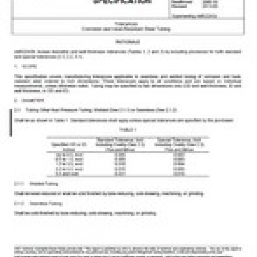 This specification covers manufacturing tolerances applicable to seamless and welded tubing of corrosion and heat resistant steel ordered to inch dimensions. These tolerances apply to all conditions and are based on individual measurements, unless otherwise noted. Tubing may be specified by two dimensions only (OD and wall thickness, ID and wall thickness, or OD and ID).
