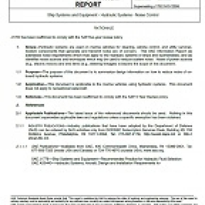 Hydraulic systems are used on marine vehicles for steering, vehicle control, and utility services. System components that generate and transmit noise are of concern. This SAE Information Report (a) addresses noise requirements which may apply to the hydraulic systems of ships and submersibles, and (b) identifies noise sources and techniques which may be used to reduce system noise. Noise of power sources (e.g., electric motors) and end items (e.g., steering linkages) is beyond the scope of this document.