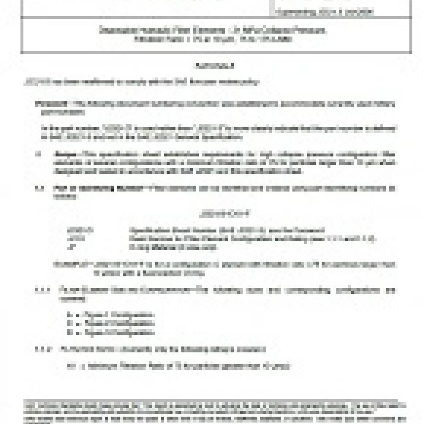 This specification sheet establishes requirements for high collapse pressure configuration filter elements of several configurations with a minimum filtration ratio of 75 for particles larger than 10 \gmm when designed and tested in accordance with SAE J 2321 and this specification sheet.