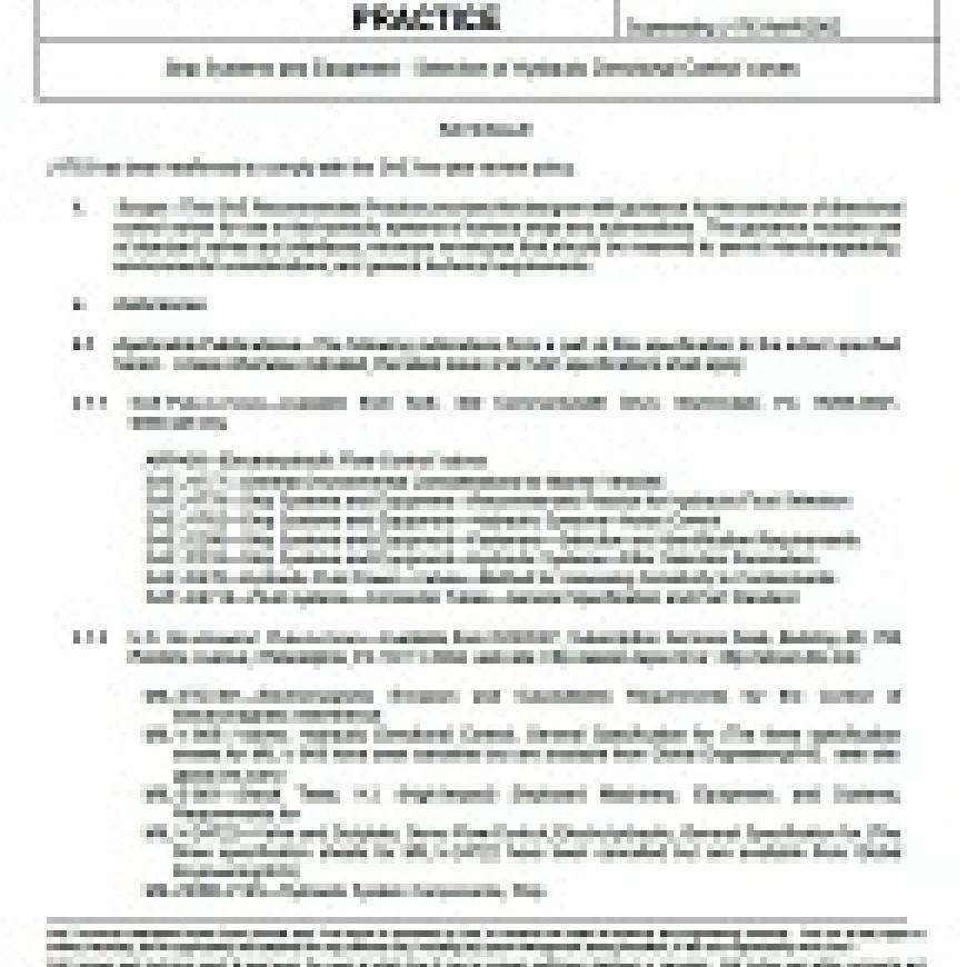 This SAE Hydrospace Recommended Practice provides the designer with guidance for the selection of directional control valves for use in the hydraulic systems of surface ships and submersibles. This guidance includes use of standard valves and interfaces, minimum envelopes which should be reserved to permit interchangeability, and environmental considerations.